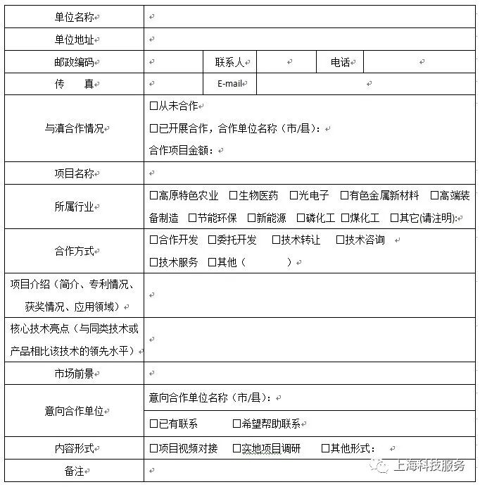 请有合作意向的单位填写《科技入滇合作项目对接征询表》,并于9月12日前反馈,以便我们做好后续的对接和服务工作。